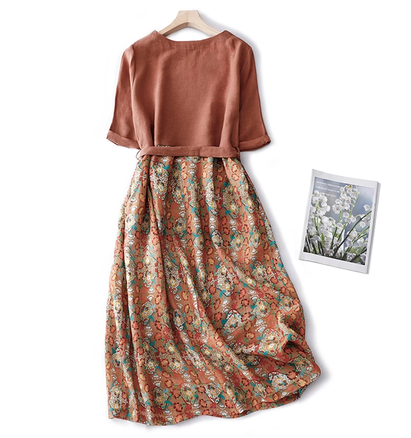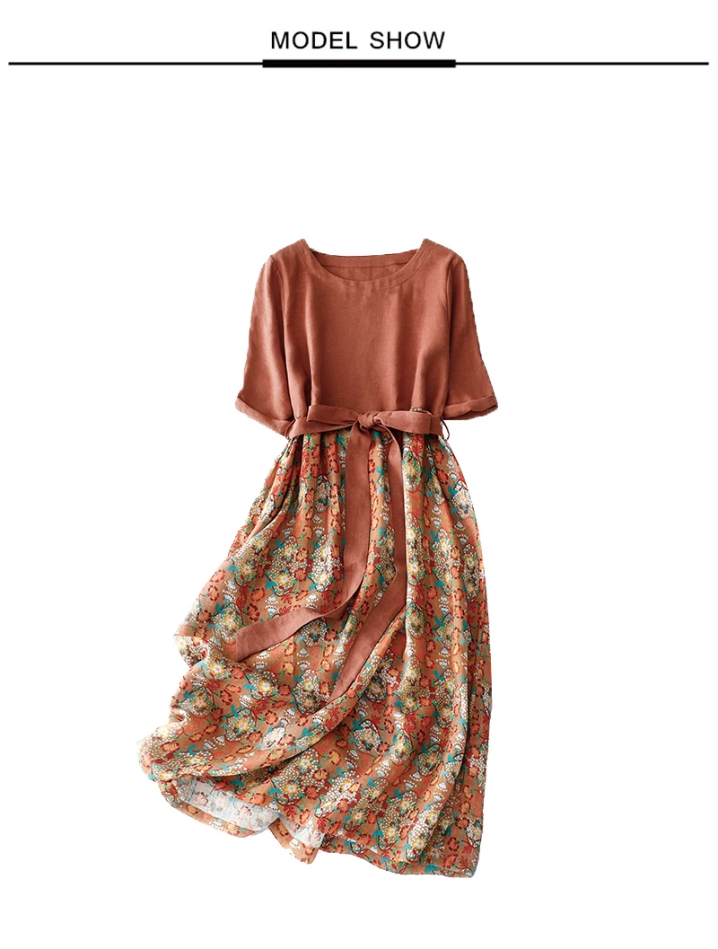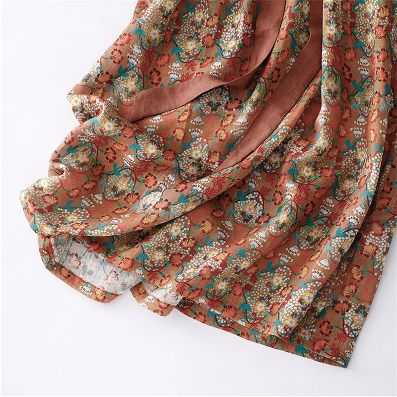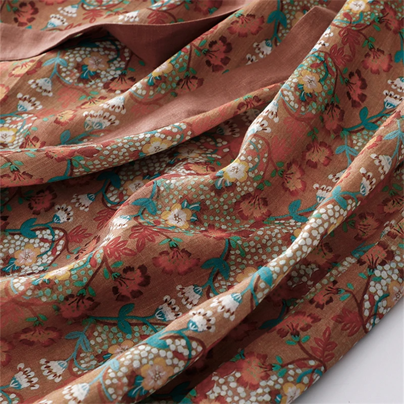 Vintage Cotton Dress – Women’s Half Sleeve Printed Holiday Maxi Dress