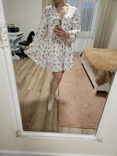The dress is of good quality, the fabric is pleasant to the body. For my size M (46), I took L. For a height of 163cm, it's also good. It fit normally, only in the neckline area it had to be hemmed. recommended Fast delivery.