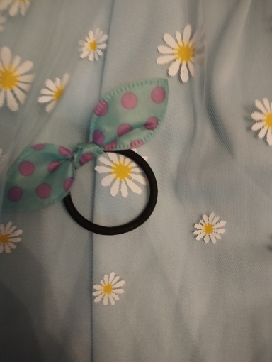 Very beautiful dress. The colors are so pretty! I really love it. And it came with a cute little bonus hair tie.