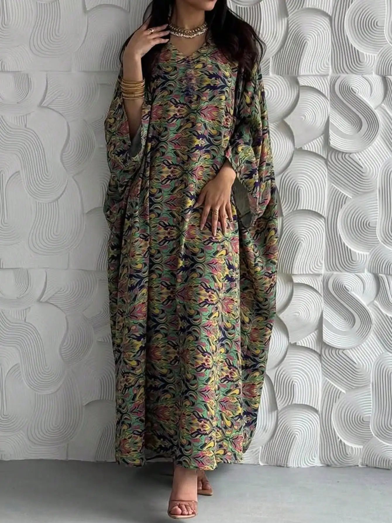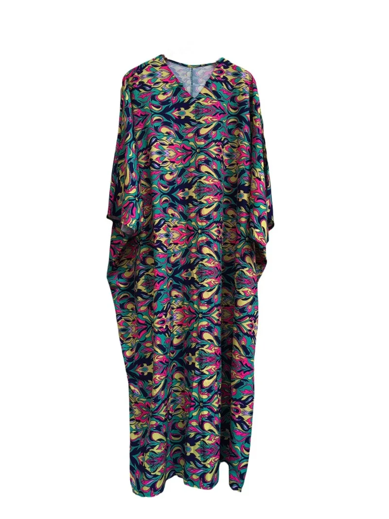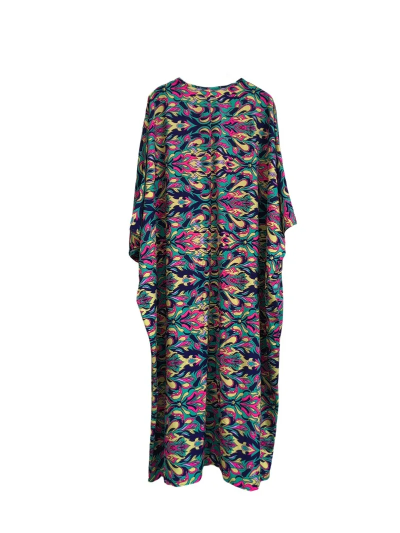 Loose Pullover Abaya – Printed Floral Maxi Kaftan Dress