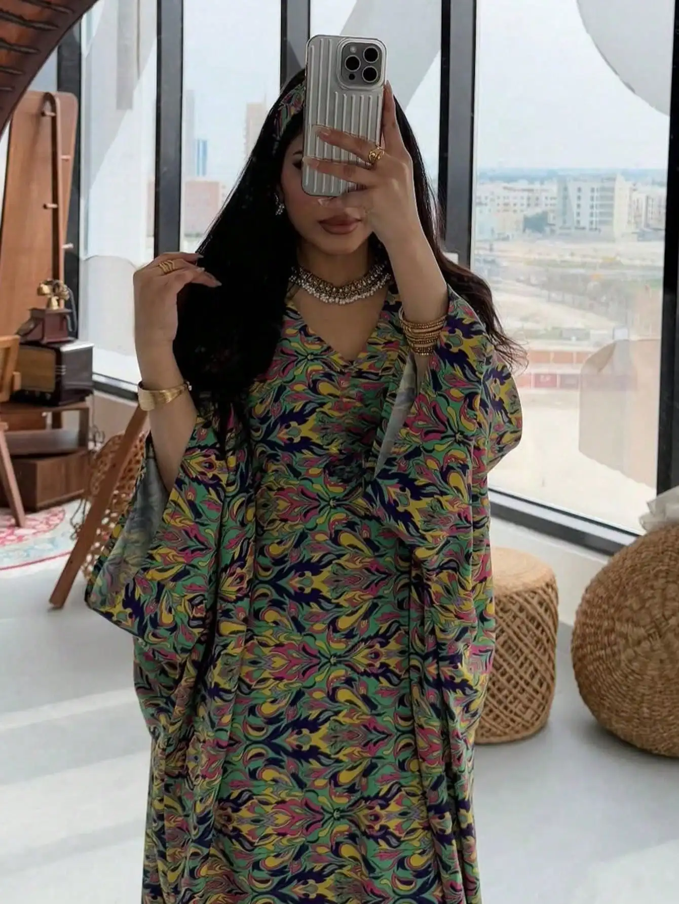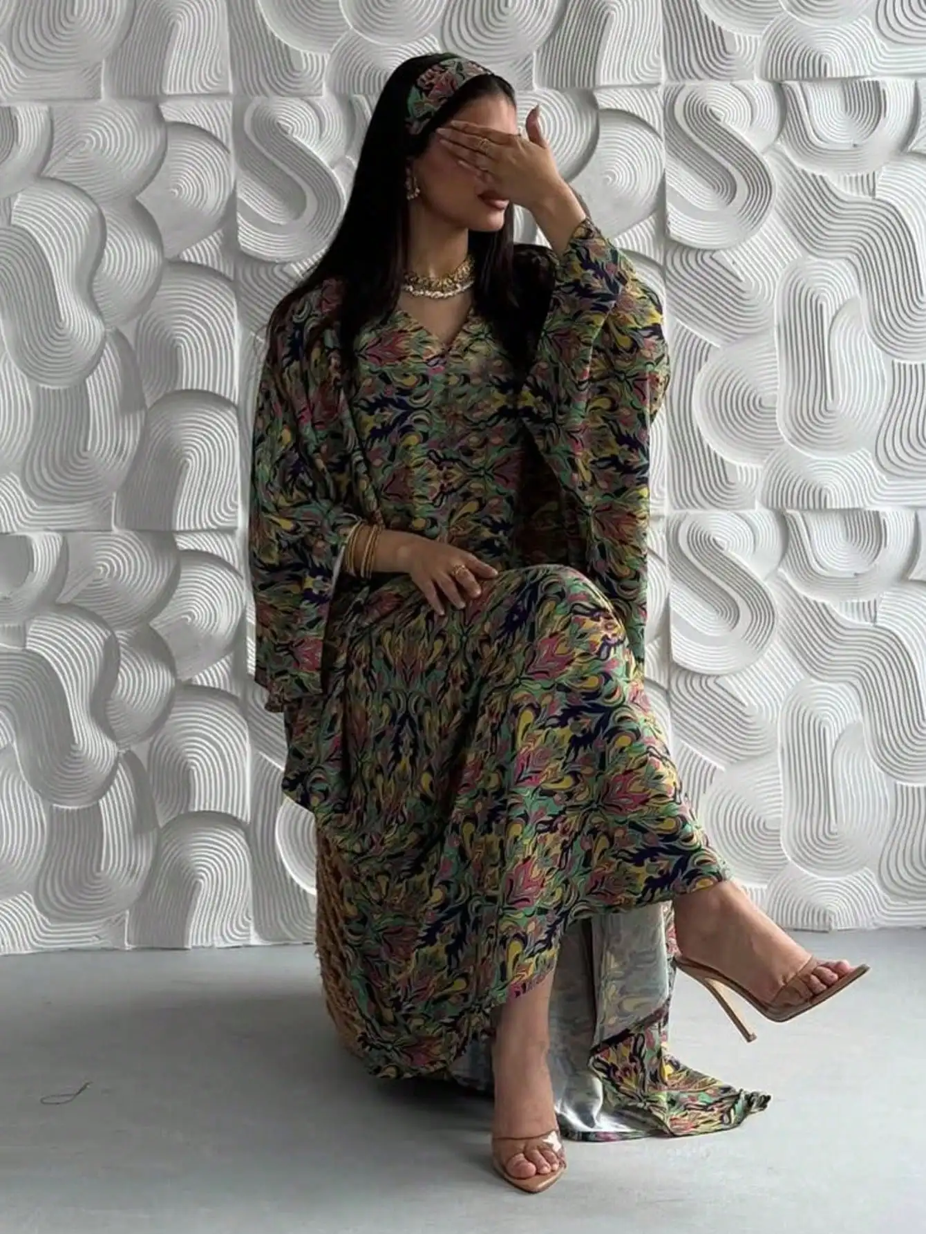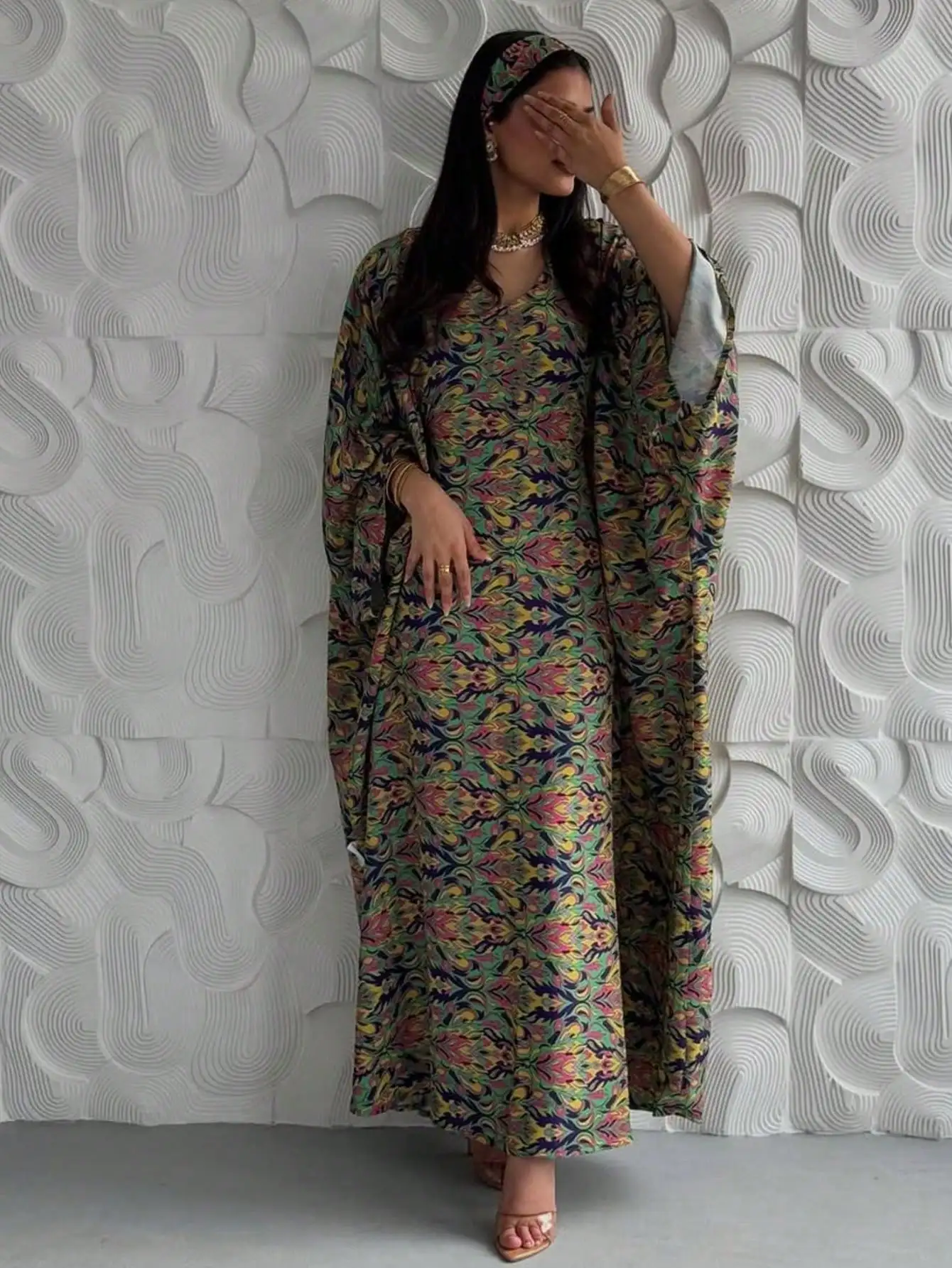 Loose Pullover Abaya – Printed Floral Maxi Kaftan Dress