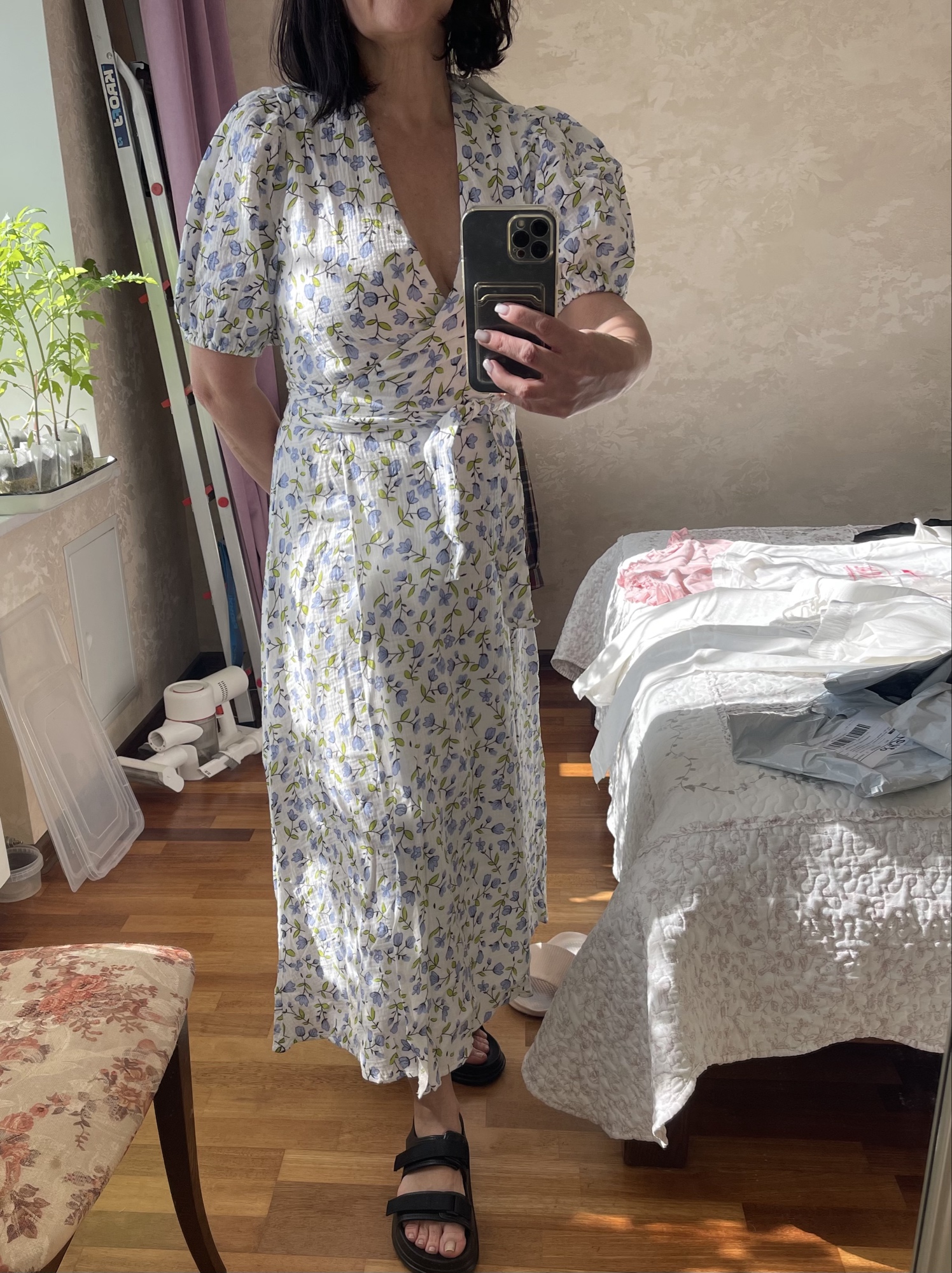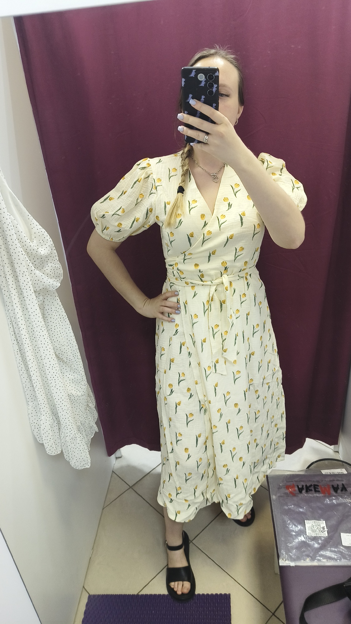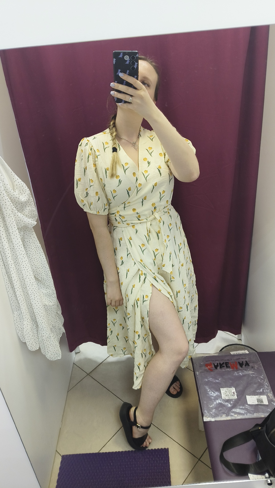 Such a cute dress 😍 soft, pleasant to the touch! Size S fits my measurements perfectly. chest: 83 cm. About. waist: 61 cm. About. hips: 92 cm. Height 150 cm, dress length to ankle.