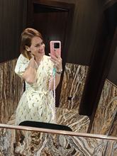 I received this dress. The fabric quality is good. But the dress doesn't fit me as expected. The top part of the dress is too short, the belt is not at the waist but under the chest. It looks shapeless. At 67 kg, I took size XL. I don't like it. It arrived with a delay of 5 days from the stated deadline.