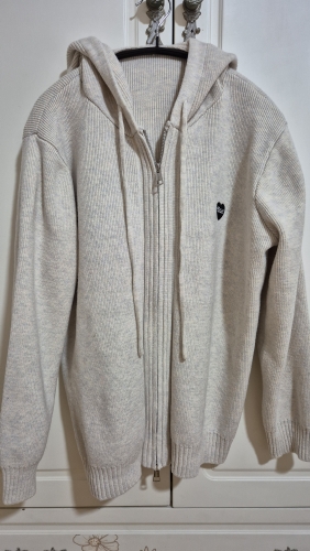 It's made of fluffy material and I really like it. It's pretty and warm, and I think I made a good purchase~~~ It's the best! After wearing it a few times, it seems like there's a little fuzz forming around the wrist area.